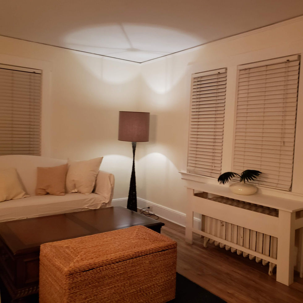 I refreshed the beach house by maintaining a cohesive palette of whites and neutrals, and by arranging the furnishings to create a cozy, comfortable environment in which every piece serves a clear purpose.